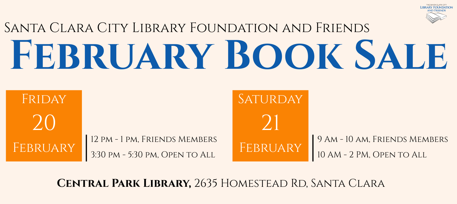 Our next book sale at Central Park Library will be on Friday, February 20 from 3:30 PM to 5:30 PM and Saturday, February 21 from 10 AM to 2 PM